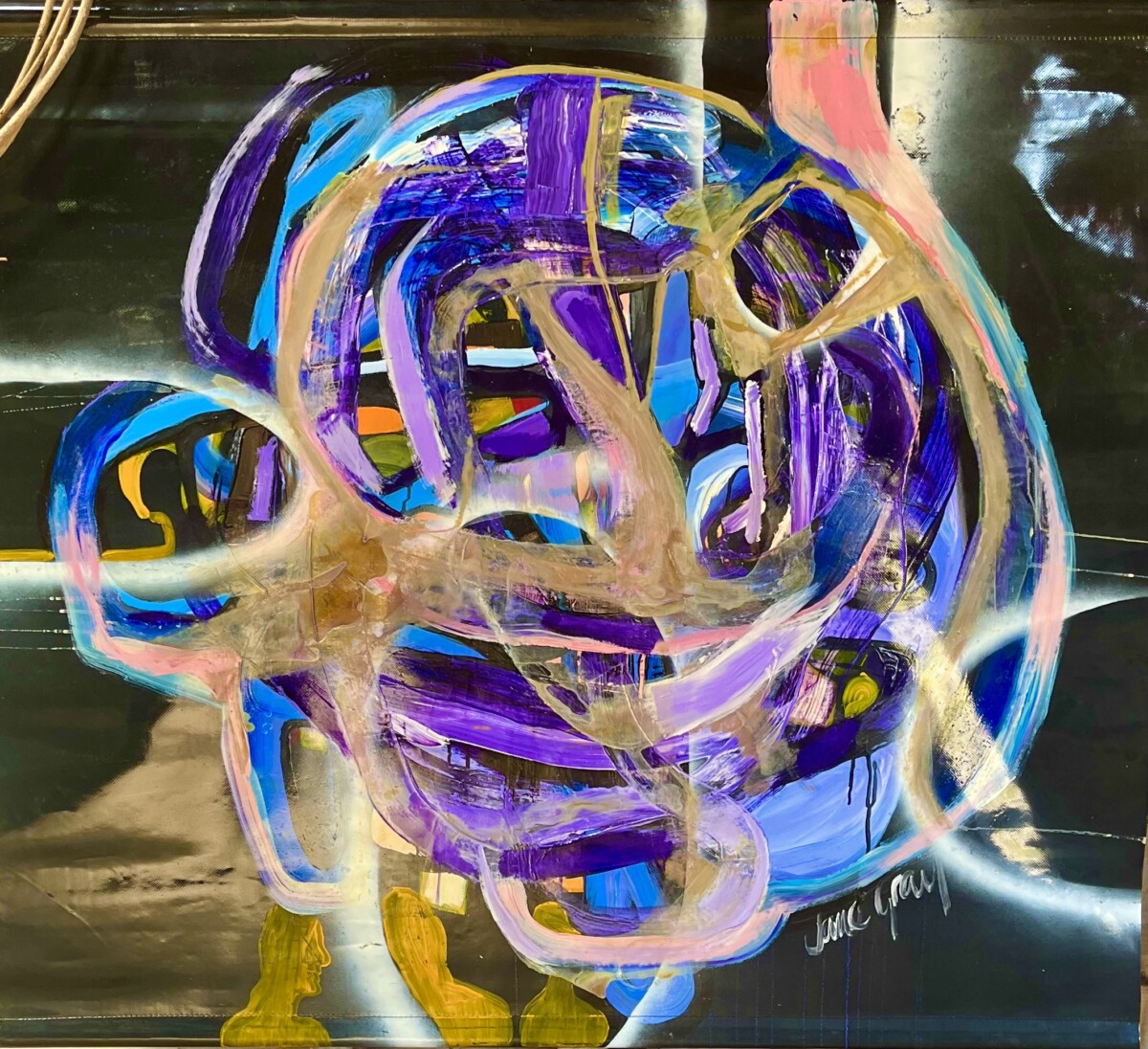 ‘Around we Go’ Acrylic & Oil on PVC $3500