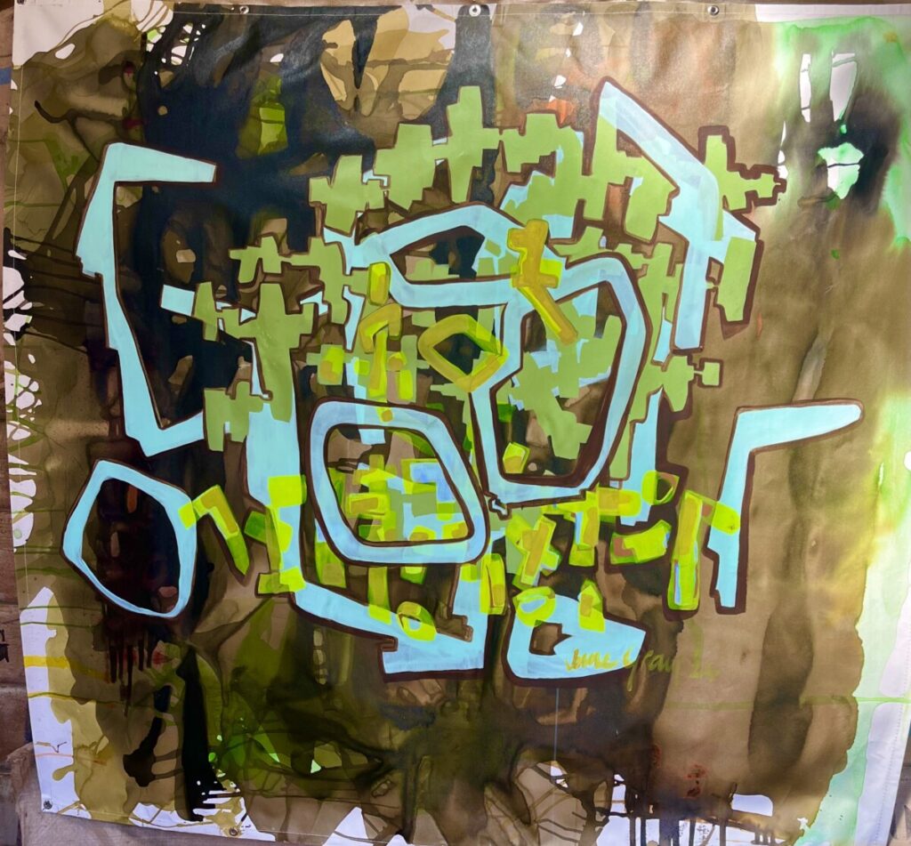 ‘The Memory of Light‘ -Acrylic & Ink on PVC 1200sq Roll up $1500